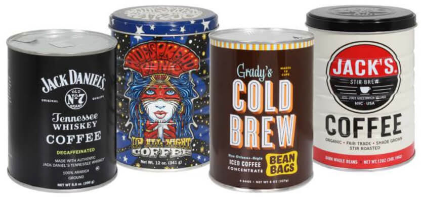 Coffee tin packaging provides a timeless and quality shelf-appeal that is sure to help your coffee stand out from other brands. Tin packaging with vibrant graphics, reflectivity or embossing is hard to overlook. The superior look and feel of custom tins give the impression of quality. The collectability helps to sell the product inside and provides a lasting advertisement.