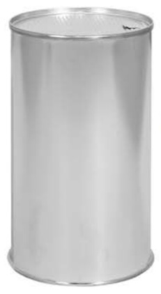 These beaded, welded cans with plain ends are 4 1/16" in diameter by 5 1/2" tall. The minimum order is 1 pallet or 968 cans.