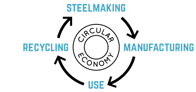 Steel is unique in that it can be recycled over and over again without degradation of quality. It embodies a circular economy as it goes from steelmaking to manufacturing to consumer to post-consumer recycling. Once the can is recycled, it can become any number of things: part of a bridge, a support beam, a bike, a travel mug, a playground, another coffee can, etc. When metal products are thrown away, they are retrieved from landfill waste by magnet and then properly recycled. For these reasons, the world recycling rate of steel has consistently ranged from 70-90% every year. It is the #1 most recycled material- more than aluminum, glass, paper, and plastic combined!